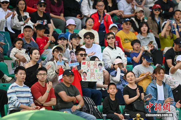 2月6日,为期两天的2026年戴维斯杯世界Ⅰ组附加赛在广州南沙开赛。中国队派出布云朝克特、吴易昺、周意、商竣程、张之臻在内的阵容主场对阵葡萄牙队。图为球迷来到现场为中国队加油助威。中新社记者 陈骥旻 摄
